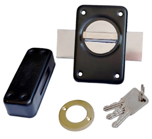 - Zamek drzwiowy nawierzchniowy z pokrętłem.