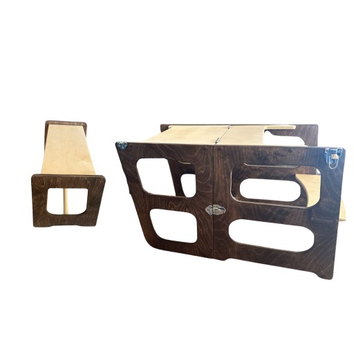Dlaczego praktyczny? Ponieważ przemyśleliśmy wszystko od A do Z i... stworzyliśmy produkt 4w1 jedyny taki na rynku, który jest nie tylko pomocny podczas gotowania, ale także użyjesz go jako biurko, krzesełko dla dziecka . Mało tego! Ma również tablicę na kredy, więc nie ma mowy o nudzie w kuchni, czy domu!