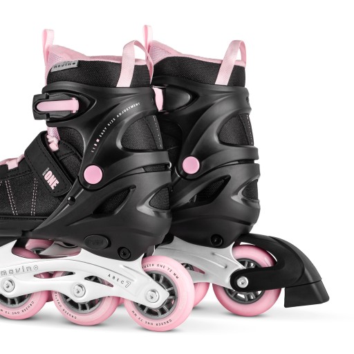 Rolki Movino Cruzer One posiadają szybki i niezawodny system regulacji rozmiaru za pomocą jednego przycisku. Czterostopniowy zakres między rozmiarem 34-37 pozwala dopasować but do stopy o długości między 21-23 cm.