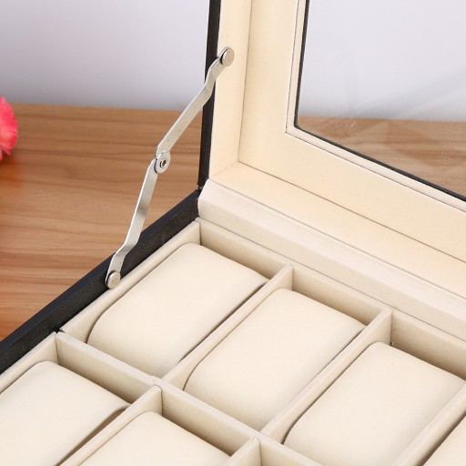 Elegancki organizer do przechowywania lub eksponowania zegarków, bransolet i innej biżuterii. Pudełko posiada 10 przegródek z wyjmowanymi wkładami, które można umieszczać pod kątem lub je całkowicie wyjąć, dzięki czemu kasetka może służyć do przechowywania innej biżuterii.