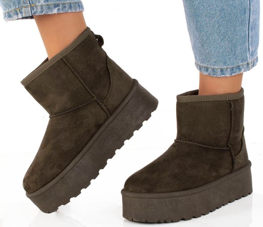 Cholewka śniegowców została wykonana z miękkiego zamszu, co nadaje im elegancki wygląd i jednocześnie zapewnia trwałość i odporność na wilgoć. Wewnętrzna część buta jest ocieplona mięciutkim i ciepłym futerkiem, które chroni stopy przed zimnem i zapewnia przyjemne uczucie ciepła.