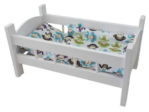 BIAŁE ŁÓŻECZKO dla lalek Z POŚCIELĄ DREWNIANE ŁÓŻECZKO