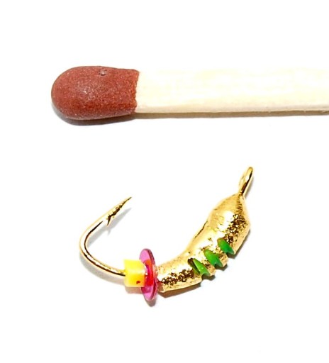 Ręcznie wykonana rosyjska mormyszka wolframowa z dziurką / uszkiem, osadzona na chemicznie ostrzonych japońskich haczykach firmy Maruto, malowana lub polerowana precyzyjnie i z dbałością.