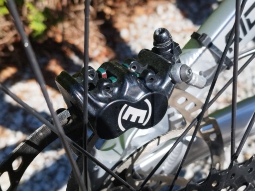 - Mocne hamulce Magura MT5 z 4-tłoczkowymi zaciskami i 203 mm tarczami hamulcowymi