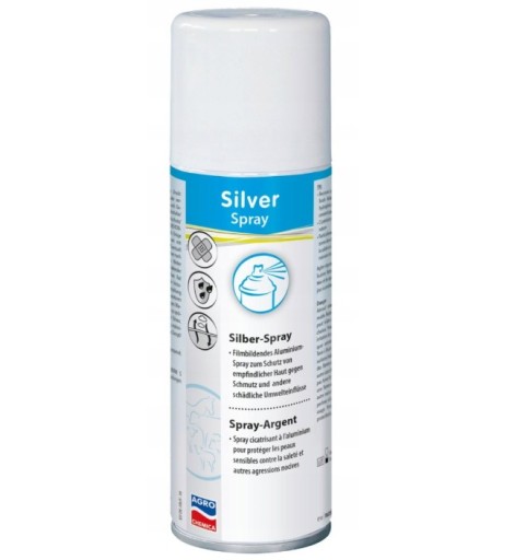 Błonotwórczy aluminiowy spray do ochrony wrażliwej skóry przed brudem i innymi szkodliwymi wpływami środowiska.