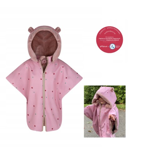 - Ponczo idealnie sprawdzi się również jako kurtka przy zabawach na zewnątrz, podczas jazdy na rowerze, na hulajnodze oraz przy jesiennych spacerach.