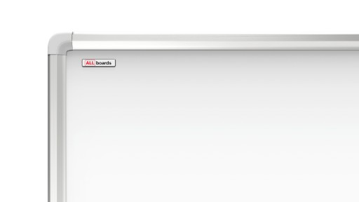 Biała magnetyczna tablica ALLboards wykonana jest z sztywnej i wytrzymałej blachy, dzięki której tablica zyskuje właściwości magnetyczne. Blacha pokryta jest warstwą lakieru, który nadaje tablicy biały kolor oraz gładką i lśniącą powierzchnię. Dzięki zastosowaniu odpowiedniego lakieru, tablice można ścierać na sucho za pomocą dołączonej do zestawu gąbki lub papierowego ręcznika.