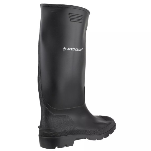 Buty Dunlop, wykonane z PVC z czarną gumową podeszwą antypoślizgową o dobrej odporności na zużycie.