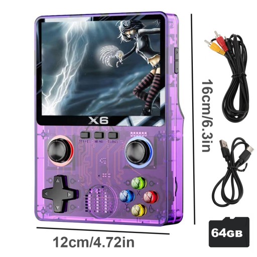 KONSOLA PRZENOŚNA X6 DO GIER RETRO 6000+ GIER 64GB 3.5'' IPS EKRAN
