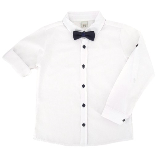 Elegancka biała koszula chłopięca, która pasuje do wszystkiego! Idealna na szczególne okazje takie jak uroczystości rodzinne, występy szkolne czy inne ważne wydarzenia. Estetycznie wykonana z wysokiej jakości materiałów, doskonale prezentuje się na dziecku.