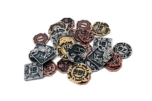 Metalowe monety są dość ciężkie. Waga żetonów jest dodatkowym czynnikiem budującym realizm w trakcie gry.