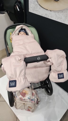 Opcja rękawic pozwala na zamocowanie zarówno na pałąku jak i na rączkach w wózku typu parasolka .