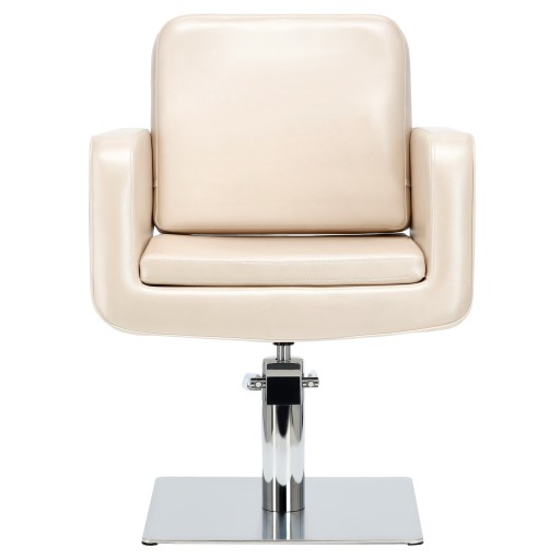 Fotel charakteryzuje się eleganckim i ergonomicznym designem, który pozwala na wygodną pracę fryzjera oraz relaks klientów.
