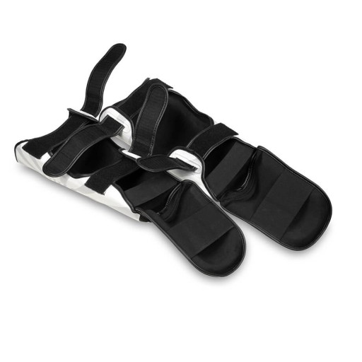Wytrzymała konstrukcja doskonale amortyzują siłę kopnięć a anatomicznie wyprofilowane formy w połączeniu z systemami rzepów i taśm ściągających zapobiegają przesuwaniu się ochraniaczy podczas treningu.
