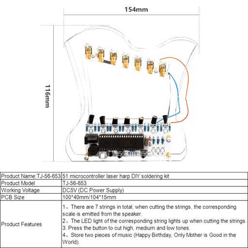 Duża Harfa laserowa elektroniczna z Obudową do lutowania