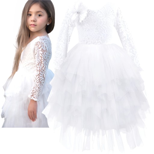 ❤️ Ta piękna sukienka to idealny wybór na specjalne chwile: wesele, komunię, chrzciny, urodziny czy sesje zdjęciowe. Subtelne połączenie koronkowej góry z tiulowym, warstwowym dołem nadaje sukience bajecznego wyglądu i sprawia, że każda dziewczynka poczuje się wyjątkowo!
