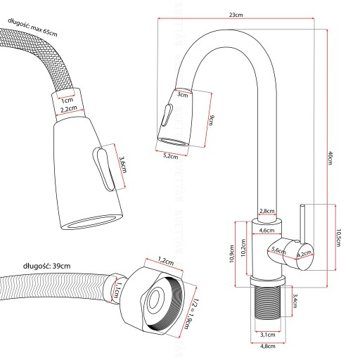 - Ruchoma, wyciągana wylewka zapewnia wygodę i wysoką efektywność