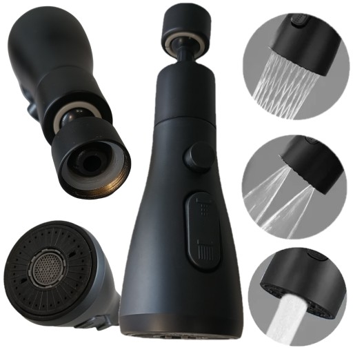УДЛИНИТЕЛЬ КУХОННОГО КРАНА АЭРАТОР АЭРАТОР 3 ФУНКЦИИ 360° ЧЕРНЫЙ