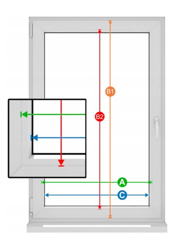 Mierzysz wysokość całego skrzydła okiennego.