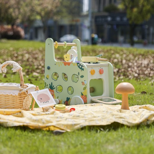 Drewniana Kuchnia Pchacz od marki Classic World to idealna zabawka, która rośnie razem z Twoim maluszkiem! To coś więcej niż zwykły chodzik – to mobilna kuchnia pełna różnorodnych aktywności, które nie tylko wspierają naukę chodzenia, ale także rozwijają zmysły i zdolności manualne dziecka. Maluchy mogą bawić się w małych kucharzy, kręcąc pokrętłami, smażąc na patelni i myjąc warzywa w zlewie. Chodzik ma solidną konstrukcję, która zapewnia stabilne wsparcie przy stawianiu pierwszych kroków, a zarazem pozwala dziecku odkrywać różne aktywności w bezpieczny sposób.