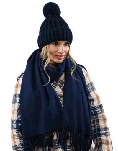 - Duży MODNY KASZMIROWY szal z FRĘDZLAMI o gładkim splocie.