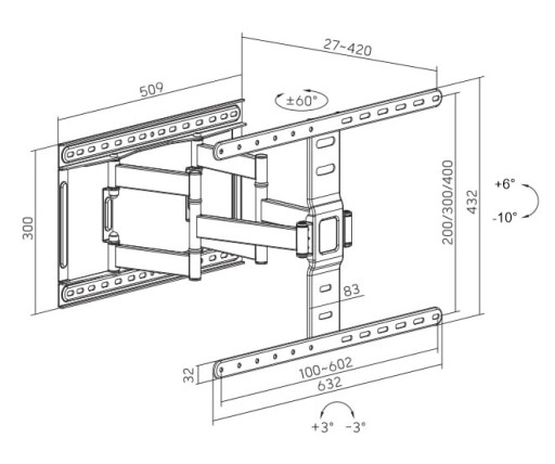 - VESA : 200x200, 200x300, 200x400, 300x200, 300x300, 400x200, 300x400, 400x300, 400x400, 500x400, 600x200, 600x300, 600x400 mm
