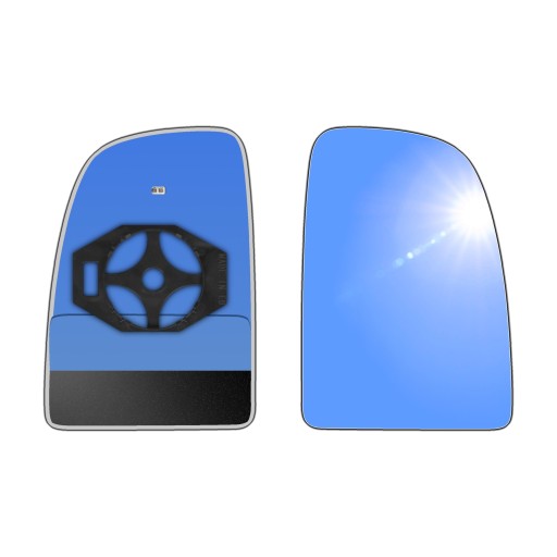Prawy ogrzewany wkład sferyczny lusterka - z plastikiem montażowym typu E0 (tzw. EURO) i niebieskim oddalającym szkłem z grzałką