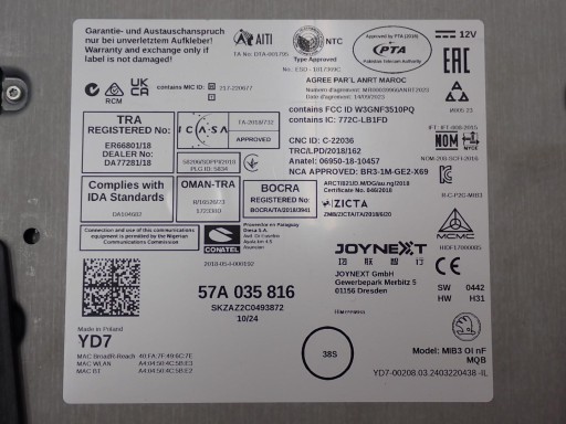 NAWIGACJA NAVI RADIO FABRYCZNA ORYGINAŁ 57A035816 655919606A 5Q0035507AH SKODA SCALA 24R