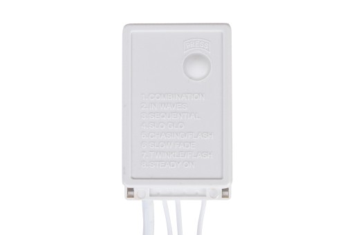 Za pomocą pilota lub przycisku na programatorze jesteś w stanie ustawić aż 8 różnych trybów świecenia lampek, w tym światło: