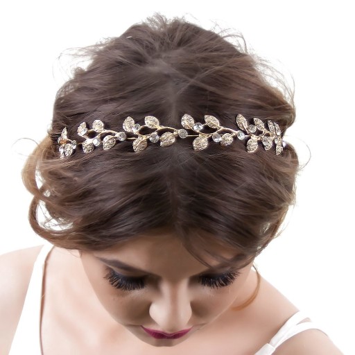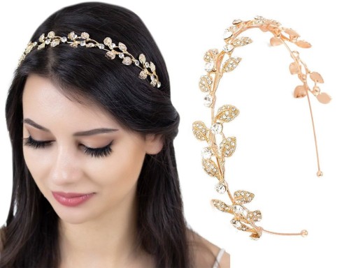 OZDOBA DO WŁOSÓW ŚLUBNA opaska ZŁOTA listki - 31019 Miss Glow