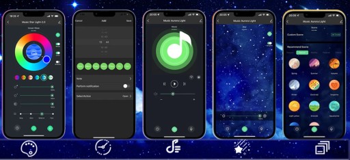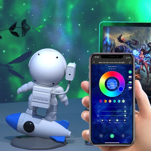 Ten innowacyjny projektor tworzy nieprzewidywalne kombinacje mgławic i gwiazd na sufitach oraz ścianach, przenosząc Cię wprost w serce galaktyki. Kolorowe światła tworzą niezwykle relaksujący, romantyczny nastrój, idealny do relaksu po ciężkim dniu .