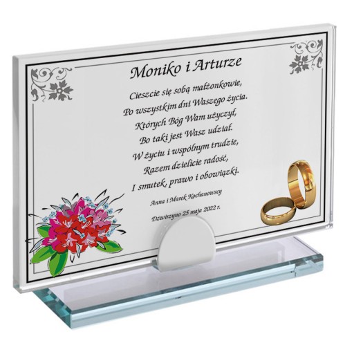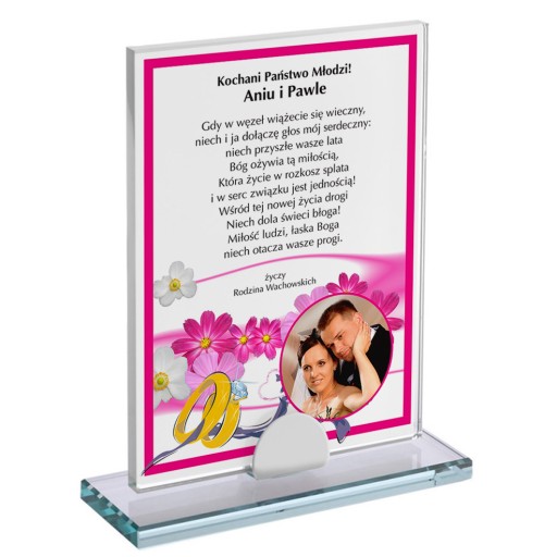 Ekskluzywna, szklana statuetka z kolorowym nadrukiem. Wyjątkowa pamiątka z okazji wielu okoliczności: na urodziny, rocznicę, ślub, zawody ...