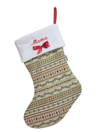 Przedstawiam świąteczne skarpety z wyhaftowanym imieniem. Zaprojektowane i wykonane w Polsce przez mabebe. Użyte materiały są najwyższej jakości.