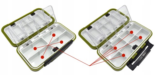Bardzo praktyczne, - pudełko/skrzynka - pozwoli nam na rozmieszczenie wędkarskiego ekwipunku według indywidualnych potrzeb. Idealne na haczyki krętliki i inne niezbędne akcesoria wędkarskie.
