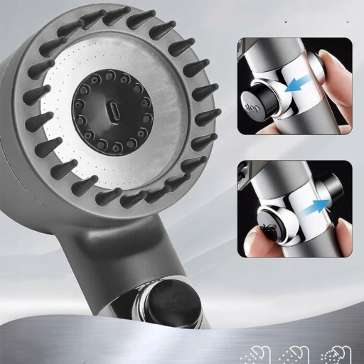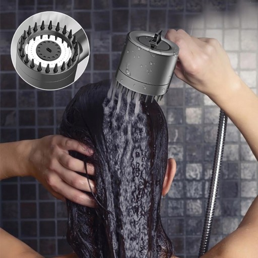 Głowica prysznicowa jest wyposażona w miękką silikonową szczotkę, która masuje skórę głowy, wspomaga krążenie krwi, łagodzi zmęczenie głowy i bóle głowy oraz wspomaga wzrost włosów, przyjemność na poziomie SPA, pozwala uprzyjemnić kąpiel. silikonowy element masujący doskonale nadaje się nie tylko do masażu skóry głowy, ale także do masowania innych części ciała.