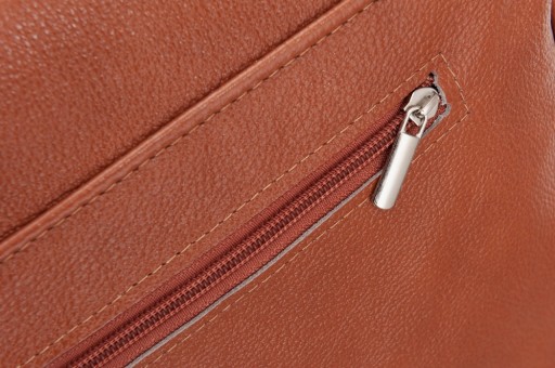 - Dodatkowo z tyłu kieszonka na suwak. Pod klapą kieszeń na zamek.
