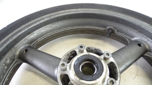 Koło sprawne, proste, z bezwypadkowego motocykla, posiada drobne odpryski lakieru na powierzchni, sprzedaję dokładnie to, co widać na zdjęciach.