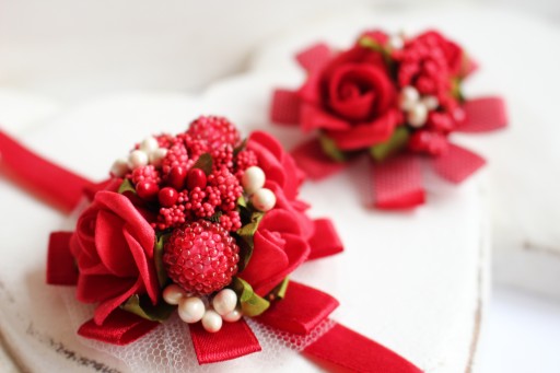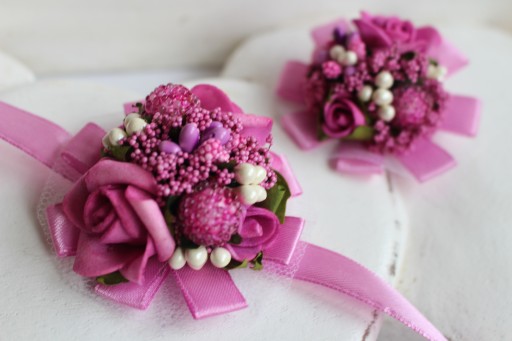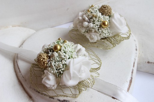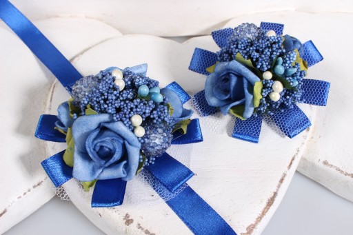 Do wyboru kotylion wiązany na rękę lub przypinka.