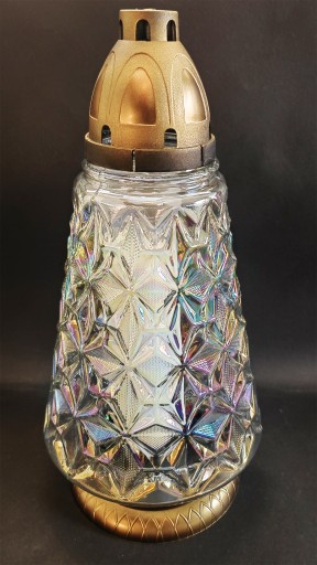 Znicz sprzedawany jest w zestawie z wkładem parafinowym wysokiej jakości - wypala się do końca bez zabrudzenia szkła.