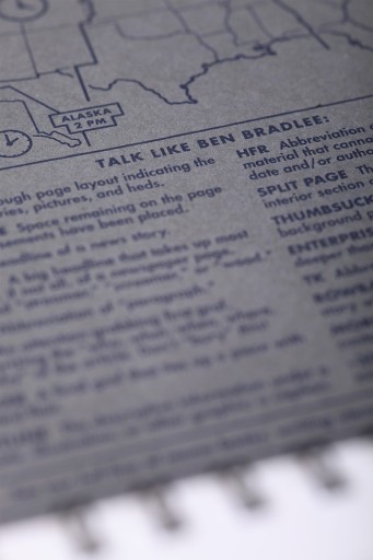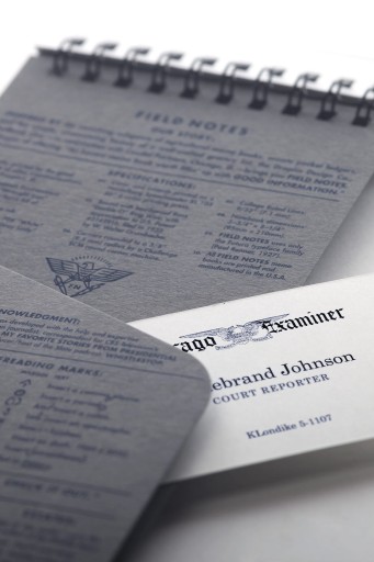 Журналистский блокнот. Полевые заметки. Строки на первой странице.
