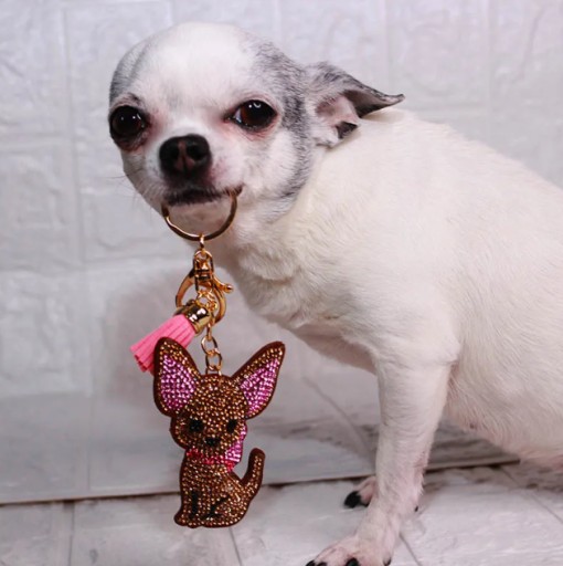 Breloczek Duży Pies Piesek Chihuahua na Szczęście, Kryształki