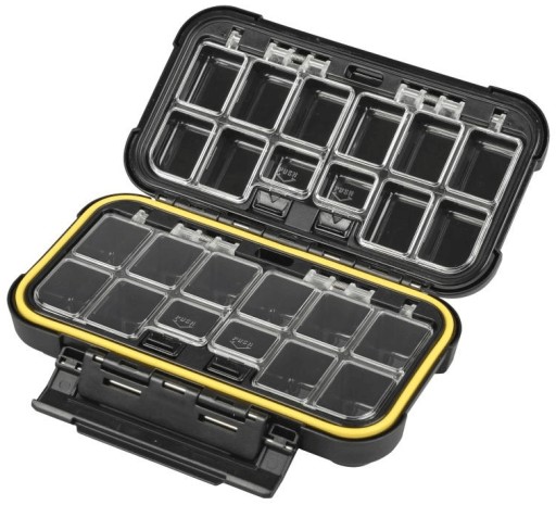 Wszystkie drobne akcesoria, takie jak krętliki, agrafki, kółka łącznikowe, haczyki i zaciski, można wygodnie przechowywać w tym wysokiej jakości pudełku z dopasowanymi pokrywkami obsługiwanymi jednym dotknięciem.