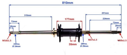 - OŚ TYŁ ATV 150 200 250 KPL piasta ośka bashan