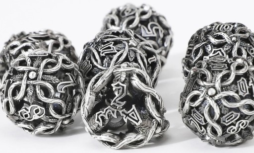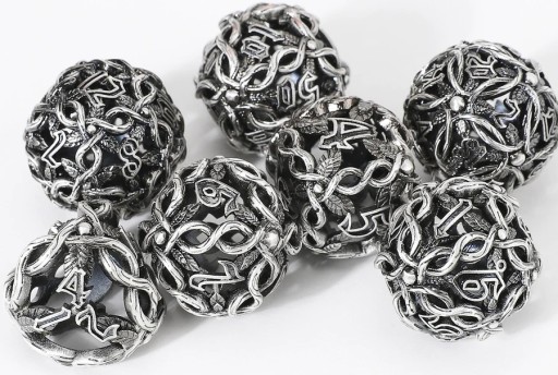 Zestaw siedmiu metalowych kości do gier fabularnych