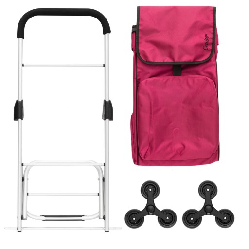 - Para potrójnych kółek sprawia, że z łatwością wciągniesz wózek po schodach. Nawet, jeśli będzie pełen ciężkich zakupów .