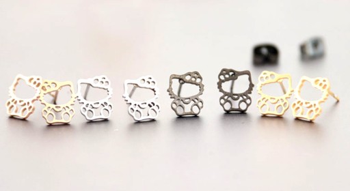Kolczyki Śliczne Hello Kitty Kotek Złote Cute