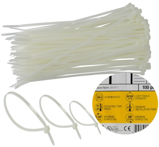 Gęste ząbki na całej długości pozwalają na precyzyjne dopasowanie pętli opaski do rozmiaru wiązki. Opaski możemy zaciskać ręcznie lub za pomocą specjalnego przyrządu.