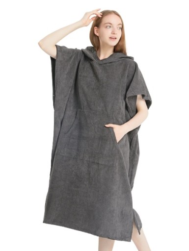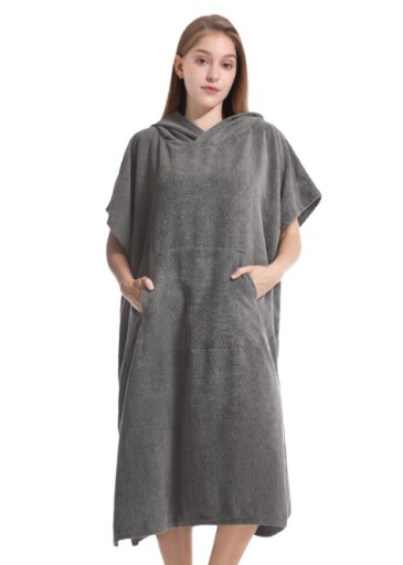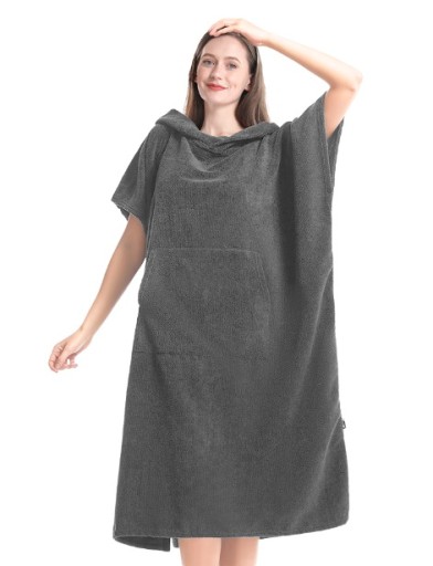 PONCZO DO SURFINGU RĘCZNIK Z KAPTUREM OKRYCIE KĄPIELOWE NA PLAŻĘ BASEN SZLAFROK DAMSKI MĘSKI SZARY BEZ RĘKAWÓW
