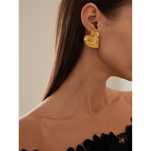 Kolczyki Sztyfty Złote Serca Serduszka Gniecione Stal Nierdzewna 35mm