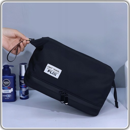 ✅ DUŻA KOSMETYCZKA PODRÓŻNA CZARNA MĘSKA POJEMNA KUFEREK NA KOSMETYKI - FLIX
